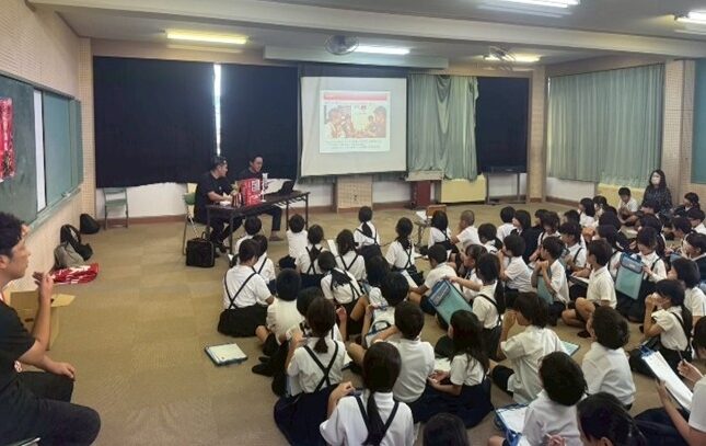 令和7年10月8日、三次市立十日市小学校3年生 95名の皆様に「三次唐麺焼」について、総合学習ということで永山会長、増谷監事、三次唐麺焼プロジェクト 福原・矢嶋、事務局 4名で講義をさせていただきました。